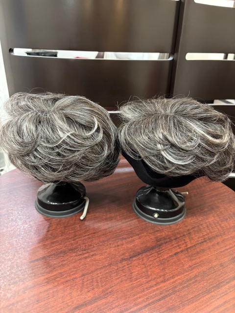 白髪メッシュをご提案させて頂きオーダーメイドウィッグをご注文頂きました(左画像)。