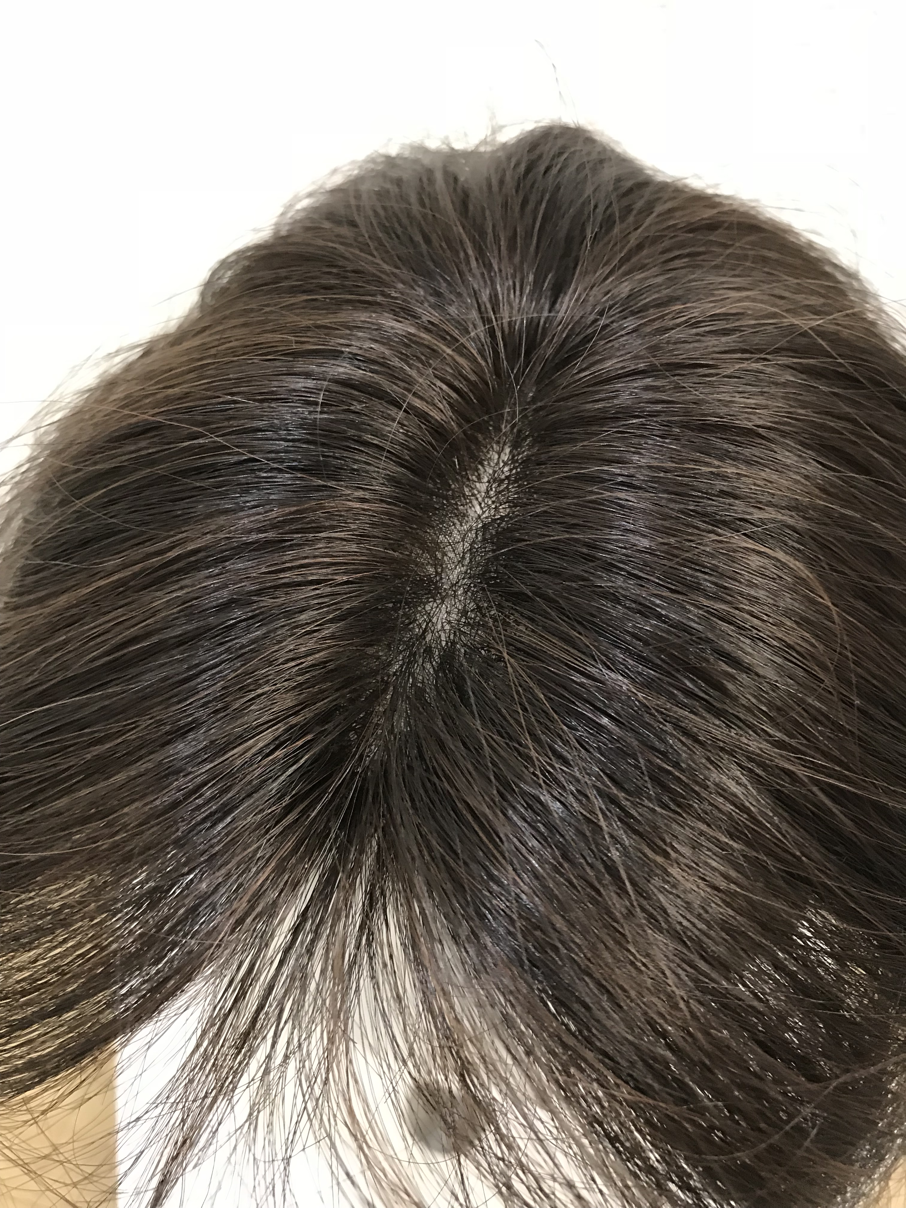 最近白髪が増えた為、自毛に合うよう白髪増毛希望。一番の問題は、遠方の為対面出来ず自髪の状態を把握できないことでした。お客様にご協力頂き、かつらをつけた状態、自髪の状態の写真をメールして頂き、その後電話で確認し「白髪を20%増量するために、まず現存する黒毛・白髪を半分取り除く。仕上がりが黒毛70%白髪30%になるよう全体増毛する。」との内容で修理に取りかかりました。ご来店での修理依頼より、修理内容確認作業に少し時間を頂きますが、宅配サービスでも十分に修理対応可能ですので、ご安心してご依頼下さい。