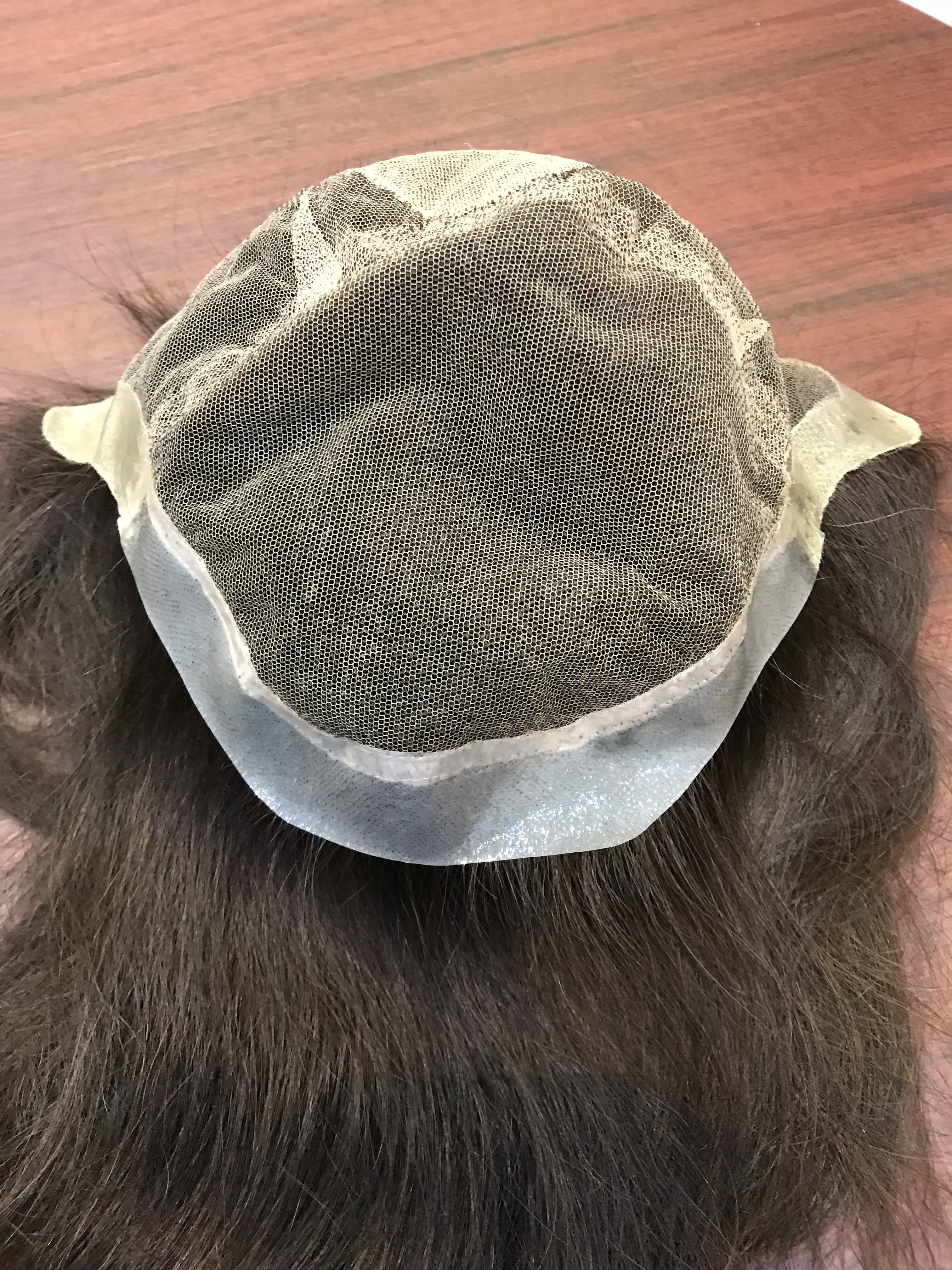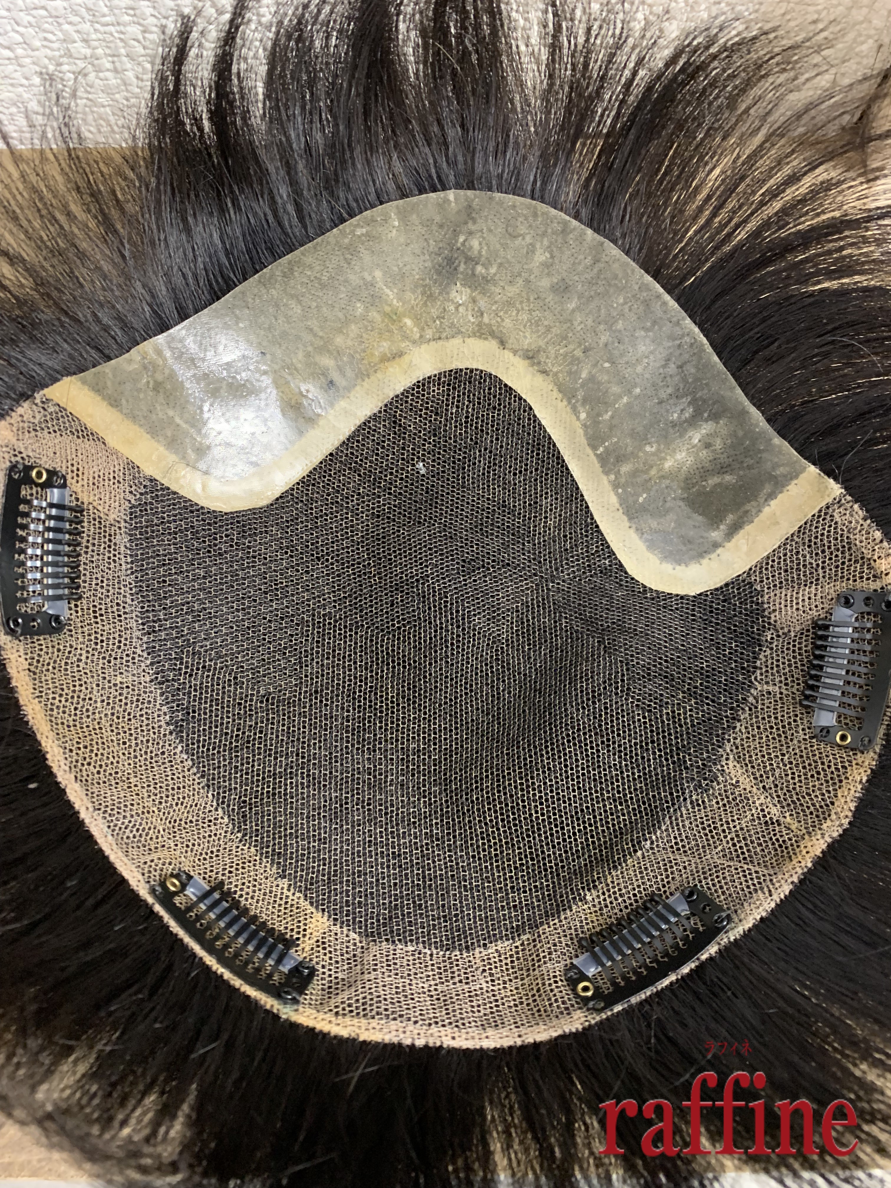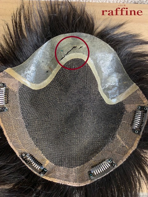 弊社で作製したメンズ・オーダーメイドウィッグ。メンズウィッグで多い修理がこのPU破れ修理です。裂けだしたら可能な限り早急に修理をお勧めします。